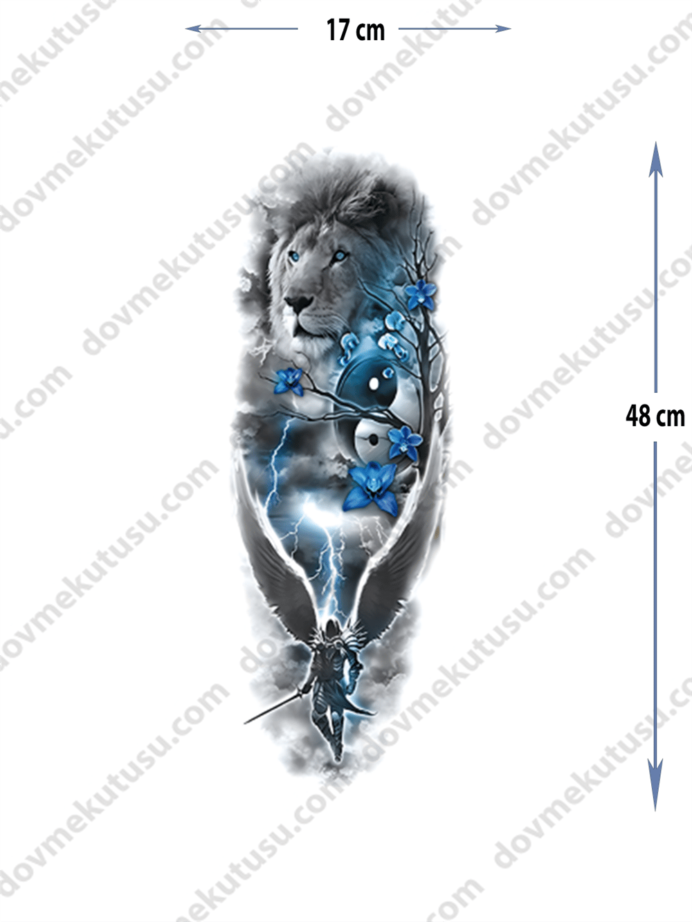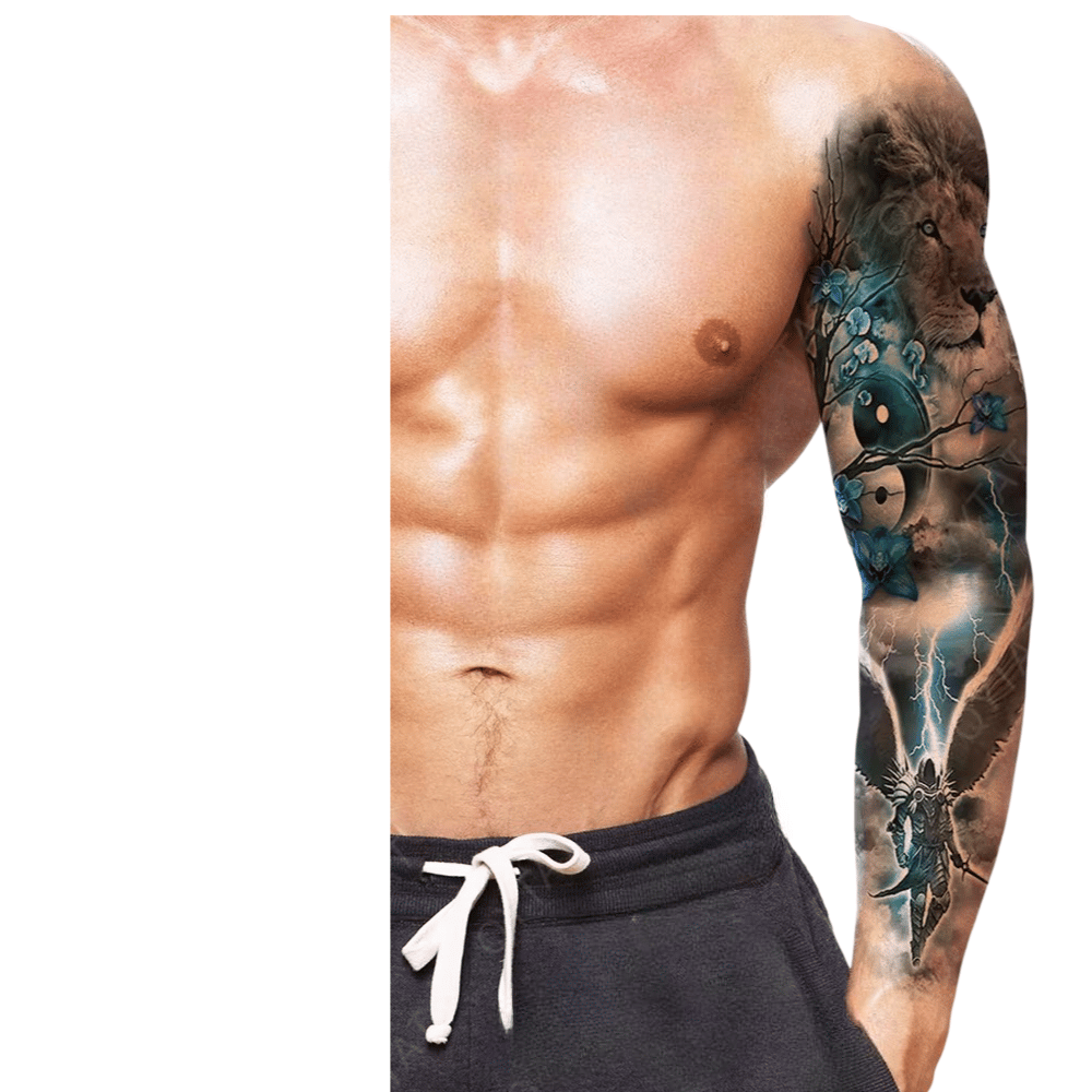 ''Geçici Kol Kaplama Dövme – Aslan ve Çiçek Motifi ile Güç, Cesaret ve Doğanın Güzelliğinin Birleşimi!