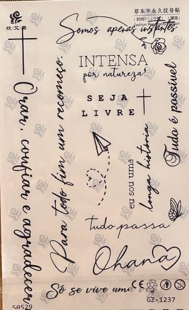 ''Motivasyon Temalı Yazılı Yarı Kalıcı Dövme – Kalp, Haç ve Kelebek Detaylı